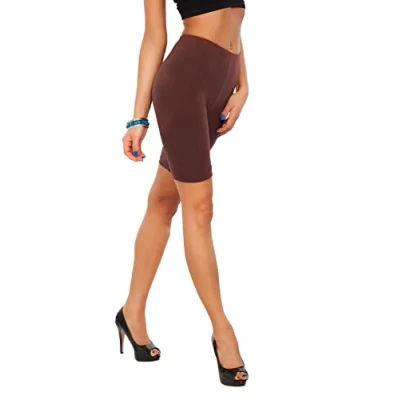 FUTURO FASHION Womens Over Knee Leggings Cotton Rich 1/2 Ladies Solid Cycle Shorts for Women UK Short Breathable Elastic Comfortable Sport Casual Cycling Pants I Sizes 8 28 Brown