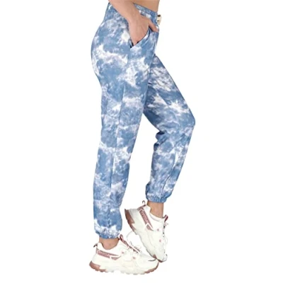 FUTURO FASHION Womens Sweatpants with Pockets I Women's Jogger Pants, Adjustable Elastic Drawstring Patterned Colorful Lightweight Trousers for Women Modern Fancy Sizes S/M Blue