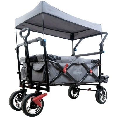 FUXTEC folding/foldable wagon hand cart garden trolley carriage of children outdoor transport fishing hiking removable canopy interior extension dual brake system CT800