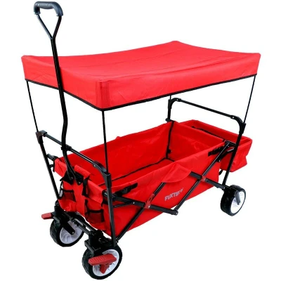 FUXTEC folding wagon hand cart garden trolley carriage of children outdoor transport beach loose ground removable canopy pull handle 4 wheels rear bag cover CT350 red