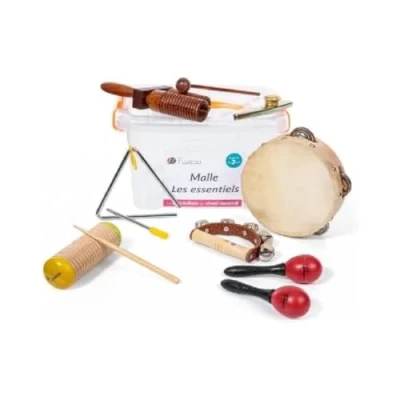 DISCOVER, RHYTHMER: The 7 instrument trunk "Essentials" allows you to discover and play with the most famous percussion. SOUND BALANCE, EASY TO TRANSPORT: It offers instruments in skin, wood or iron, to shake, hit or scratch, all contained in a trunk with handle. RHYTHMER, PLAY IN GROUP: This trunk provides a choice of instruments for a small group to rhythm any style of music. Storage, protection, transport: The trunk allows you to store, protect and transport the instruments so that musical practice is possible everywhere. Dimensions: L. 28cm x 21cm x H 18 cm