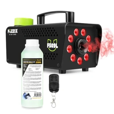 Fuzzix F509L Fog Machine with Lights 500W Party Smoke 9 RGB LEDs, Wireless Remote & 250ml Green Fluid for Disco, Halloween, DJs, Club Parties Event Atmosphere Effects