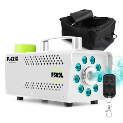 Fuzzix F509LW Party Smoke Machine with RGB LED Lights, Wireless Remote Control and GearSack Bag Fog Lights for DJ Disco Effects