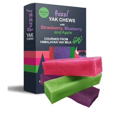 🫐🍓🍎 Three Fruity Flavours, One Wholesome Treat – Blueberry for antioxidants, Strawberry for immune and coat health, and Apple for fibre and freshness — a nutritious trio that keeps your dog happy, healthy, and energised. 🦷 Natural Dental Care with Every Chew – Dense yak texture helps clean teeth, reduce plaque and tartar, and strengthen gums — supporting oral health naturally without harsh additives. 🥛 High in Protein, Low in Fat – Made from pure yak and cow milk, providing calcium and essential nutrients to maintain strong bones, lean muscles, and steady energy levels. 🌾 Allergy-Friendly & Gentle – Free from grains, gluten, preservatives, and artificial flavours, making it perfect for dogs with sensitive stomachs or dietary restrictions. 🌍 Ethically Made in the Himalayas – Handcrafted using traditional methods with sustainable sourcing and eco-friendly packaging to care for both pets and the planet.