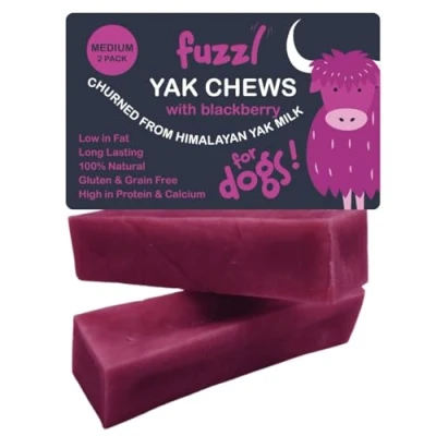 100% Natural Dog Chew with Blackberry - All Natural Fuzzl Yak Chews are made with 100% natural and premium ingredients. Blackberries are low in sugar and calories. They contain lots of vitamins and nutrients essential for canine health. At Fuzzl only the best natural ingredients are used. This Dog Yak Chew is churned from Himalayan Yak Milk, providing your four legged friend with a tasty natural treat Long Lasting Yummy Dog Treat - This long lasting dog chew will provide your dog with a delicious source of Calcium and Protein. The size and texture will ensure your dog is kept busy for hours and providing important nutrients Healthy, Nutritious and Low in Fat - High in Protein and Calcium, our Yak Chews make an excellent snack for dogs. Unlike Rawhide, these dog teeth cleaning chews are great for your pets digestive system Natural Dental Chew - Dogs will love Fuzzl Yak Chews and they have the added benefit of being excellent Dental Teeth Cleaning Chews. This dog food is a tasty dog treats for small, medium and large dog and an excellent alternative to dog bones Gluten and Grain Free Healthy Dog Treats - These Calming Dog Treats are the perfect no hide dog chews and the ideal dog treats for large dogs, medium and small dogs. Enjoy Fuzzl Dog Treats Natural