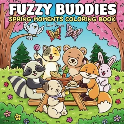 Fuzzy Buddies Spring Moments: A Bold & Easy Coloring Book for Adults and Teens, Featuring Cozy Friends Cheerful Time Scenes Relaxation.