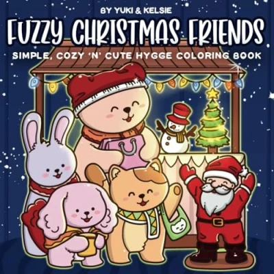 Fuzzy Christmas Friends: Simple, Cozy 'n' Cute Hygge Coloring Book for Adults & Kids of All Ages