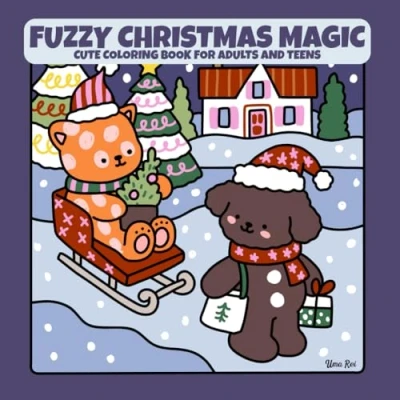 Fuzzy Christmas Magic: Cute and cozy coloring book for adults teens