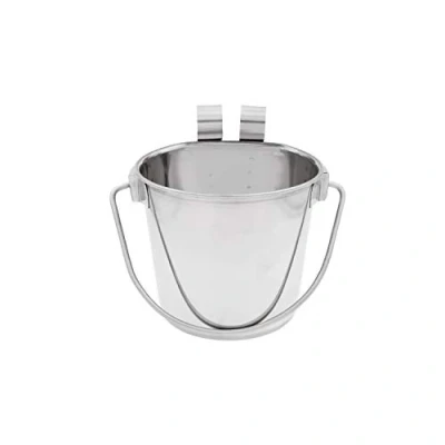 QUALITY. Our flat-sided bucket is the perfect accessory for your cage, kennel, cage, or crate. HANDLES. Contoured handles for comfortable lifting & carrying when feeding and watering your pets. HOOKS. Durable hooks attach the seamless stainless steel bucket to your fences, kennels or stands. STAINLESS STEEL. The stainless-steel design resists rust, scratches, and breakage. DISHWASHER SAFE. Quick & easy clean-up when your pet has finished eating.
