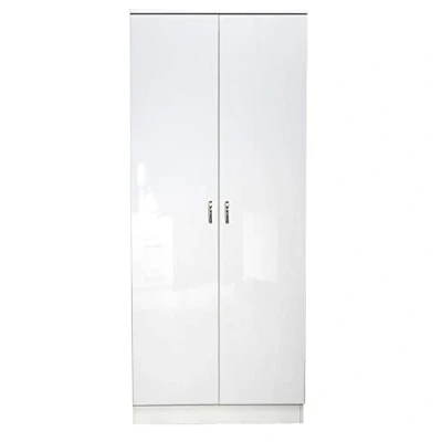 FWStyle Chilton 2 Door High White Gloss Bedroom Wardrobe Modern Storage Furniture Polished Metal Handles