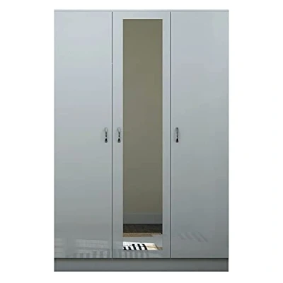 FWStyle Chilton High Gloss 3 Door Mirrored Wardrobe, Grey