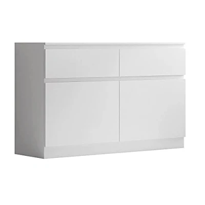 FWStyle Modern Scandinavian Style 2 Door Drawer Sideboard Storage Unit, Matt White