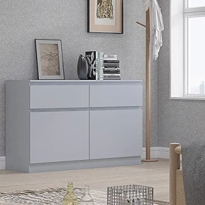 Crisp matt grey finish and modern no handle design Modern combination sideboard Sleek metal hinges, easy-glide metal runners Sharp, contemporary design of the bedside table will look great in any other room Scratch-resistant melamine coating