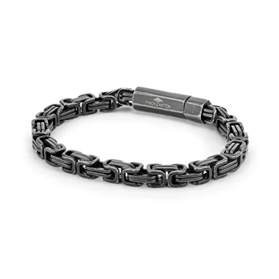 Stainless steel Byzantine chain bracelet Material: stainless steel IP gun antique look Chain type: Byzantine chain Size: 19 cm Clasp: buckle Packed in a high-quality, versatile canvas bag The Fynch-Hatton men's jewelry and watch collection impresses with its individual and timeless, high-quality design The perfect gift idea for any man