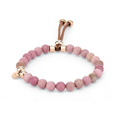 FYNCH HATTON Stone Beads Bracelet Stainless Steel, 16 cm, Rhodonite