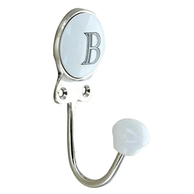 G Decor White Chrome Alphabet Number Letter Ceramic Vintage Shabby Chic Coat Hook Porcelain 350 (B)