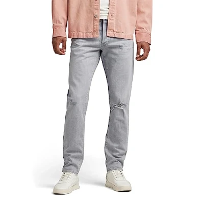 G Star Men's 3301 Slim Fit Jeans, Grey (sun faded ripped skyrocket 51001 D324 D901), 36W / 34L
