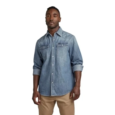 G Star Men's 3301 Straight Shirt, blue (faded cadet D12698 D303 D890), S