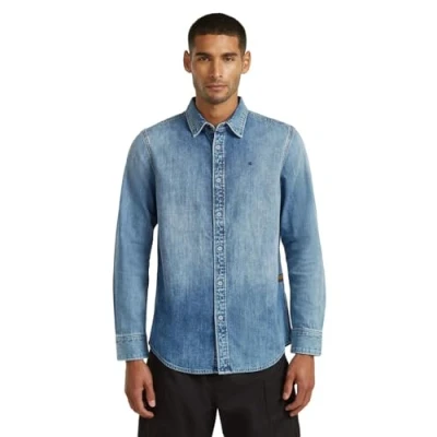 G Star Men's Clean Slim Shirt ls, Size: S, Color Blue