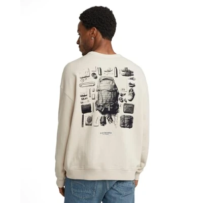 G Star Men's Knolling Back Graphic Loose Sweater, White (whitebait D25135 D557 1603), L