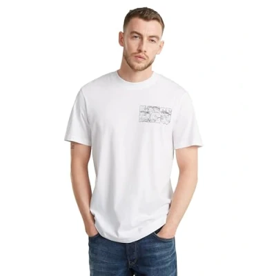 G Star Men's Topography Chest Graphic Slim T Shirt, White (white D25146 C506 110), L