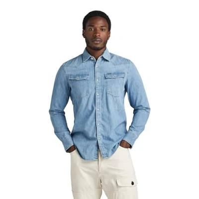 G Star Men's Unisex 3301 Slim Shirt, Blue (medium aged D12697 D013 071), XXL