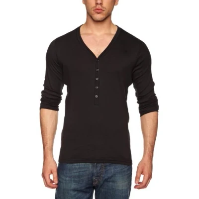 G STAR RAW Basics CL Grand V Neck Long Sleeve Men's T Shirt Black Large