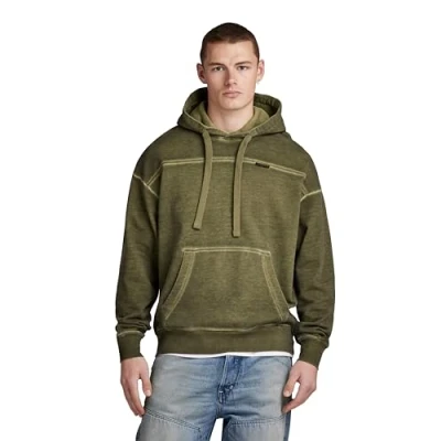 G STAR RAW Men's Garment Dyed Loose Hoodie, Green (dark olive gd D24219 D249 C793), M