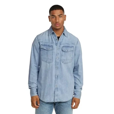 G STAR RAW Men's Slim Denim shirt Shirts, blue (sun faded mist D23616 D252 G342), L