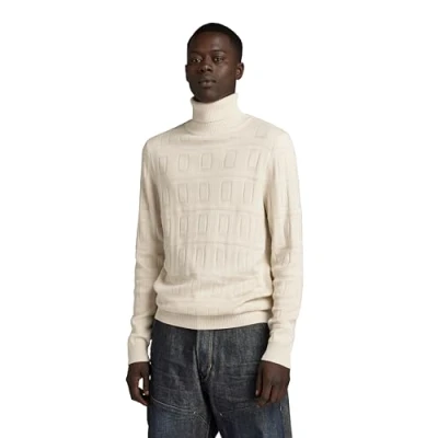 G STAR RAW Men's Table Structure Turtle Knitted Sweater, Beige (eggnog D23934 D167 G076), XL