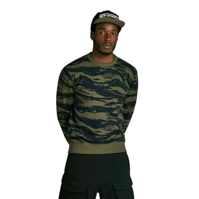 G STAR RAW Men's tiger camo Sweater, Multicolor (shadow olive 2L D24415 C782 G393), XS