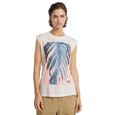 G STAR RAW Women's AI print elasticated waist sl t wmn Tops, Grey (lt chalk D24672 4107 1284), S