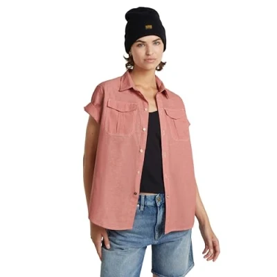 G STAR RAW Women's Military button down ssleeve shirt wmn Shirts, Multicolor (pink ink/milk D24592 D123 D852), S