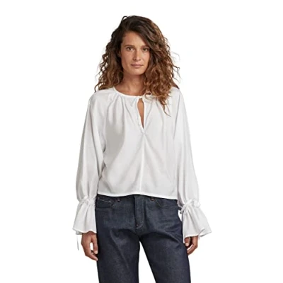 Round neck with a slit- binding proceeds in a drawcord Wide long sleeves - drawcord added for a tighter wrist Straight hem, cropped length Roomy back panel, gathered at the back neck