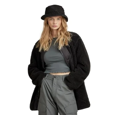 G Star RAW Womens Long Teddy Jacket Black Size Large