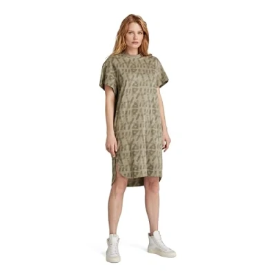 G Star RAW Womens Printed Loose T Shirt Dress Green Cotton Size Medium