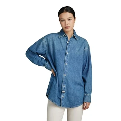 G Star RAW Womens Relaxed Denim Shirt Pocketless Navy Cotton Size Small