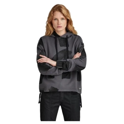 G Star Women's Calligraphy Allover Loose Hooded Sweater , Multicolor (grey asphalt raw paint D24384 D589 G419), S