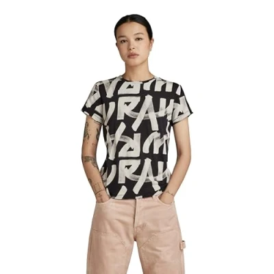 G Star Women's Calligraphy Allover Top, Multicolor (dk black raw paint D24500 C565 G421), S