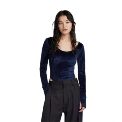 G Star Women's Deep Scoop Slim Body, Blue (warm sartho D23789 D422 C423), S