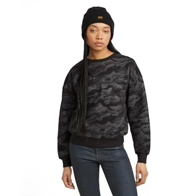 G Star Women's lace AOP Loose Sweater, Multicolour (dk black wave D25169 D865 G900), XXL