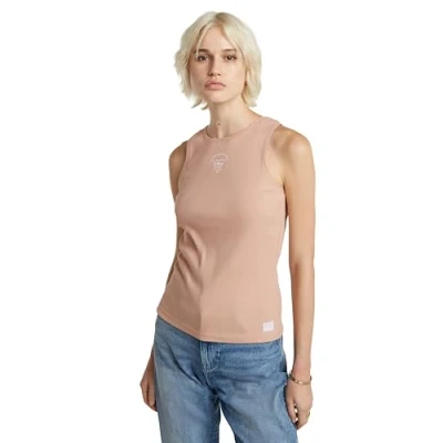 G Star Women's Racerback Ribbed Slim Tank Top , Pink (rugby tan D24645 5268 G373), M