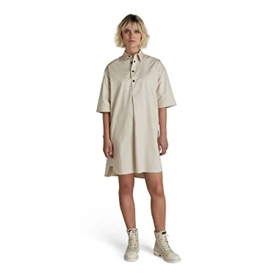 G Star Women's Shirt Dress Short Sleeve, Beige (whitebait D21884 A504 1603), L