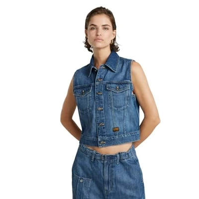 G Star Women's Shrunken Denim Vest , blue (faded cliffside D24570 D536 G326), XXS