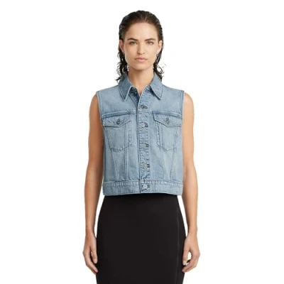 G STAR Women's Shrunken Denim Vest Jackets, Blue (Sun Faded Cloudburst D24570 D536 G339), L