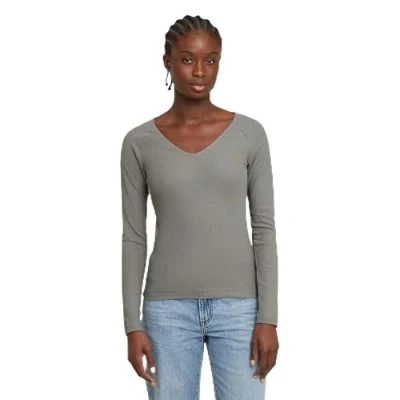 G Star Women's Slim Rib V Neck Top, Green (wild olive D26064 D253 1866), M