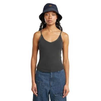 G STAR Women's Spaghetti Strap Rib Top Wmn T Shirt, (Dk Black Gd D26612 d968 b564), S