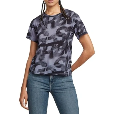G Star Women's sprayed letters Top, Multicolour (osaka blue D26066 C565 H317), M