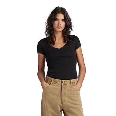 G STAR Women's Base V Neck Cap Top, Black (Black D07211 3310 990), XXS