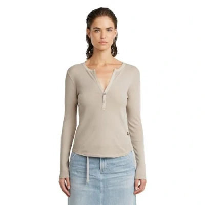 G STAR Women's Deep V Slim Ls Wmn T Shirt, Beige (Dk Brick Gd D26140 d968 d848), S